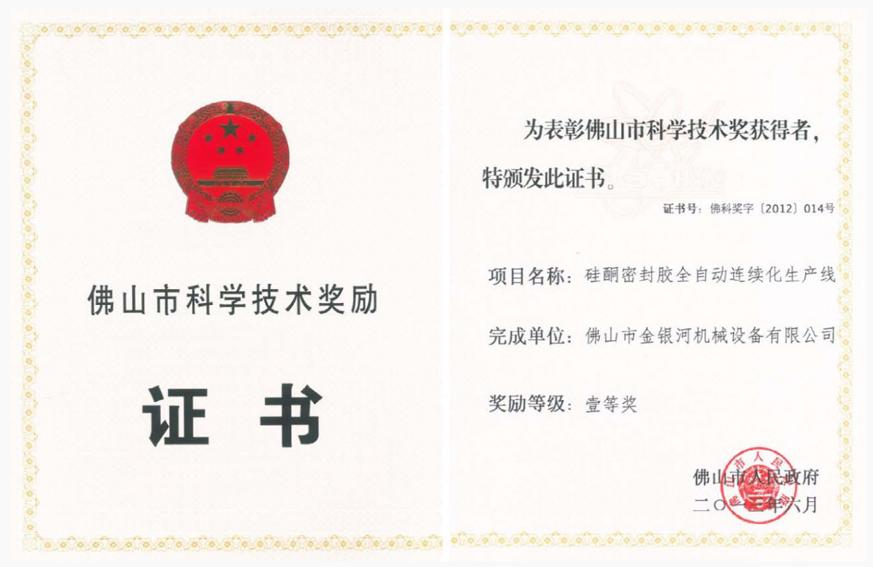 2013年6月,伟德国际victor·1946源自项目“硅酮密封胶全自动连续化生产线”被佛山市人民政府授予“佛佛山市科学技术一等奖”。