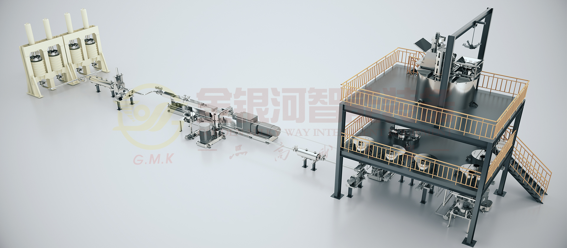● 流水线型超高次数双螺杆捏合分散技术,在国际上首次实现了建筑胶大产能连续化制备,产能可达3500L/h(根据机型设定)。