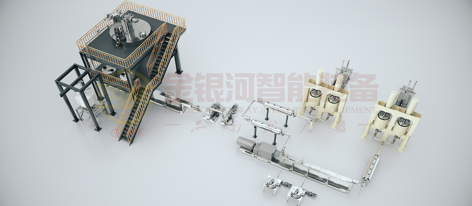 ● 流水线型超高次数双螺杆捏合分散技术,在国际上首次实现了建筑胶大产能连续化制备,产能可达3500L/h(根据机型设定)。