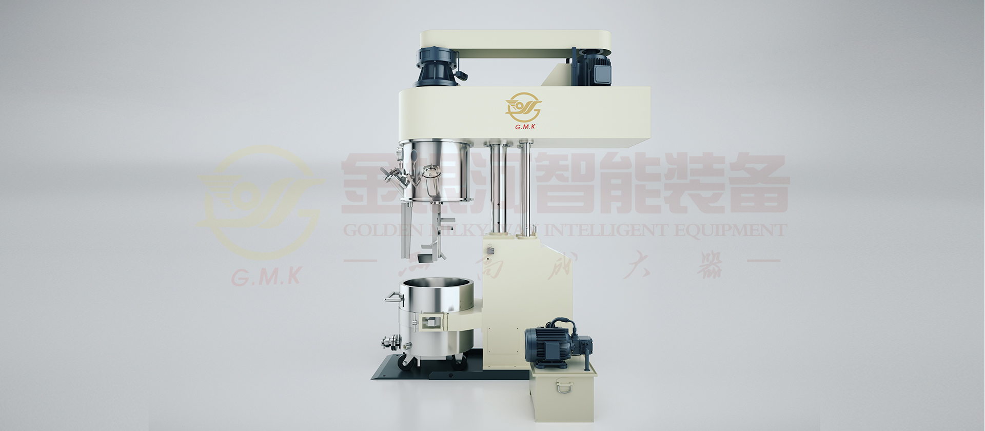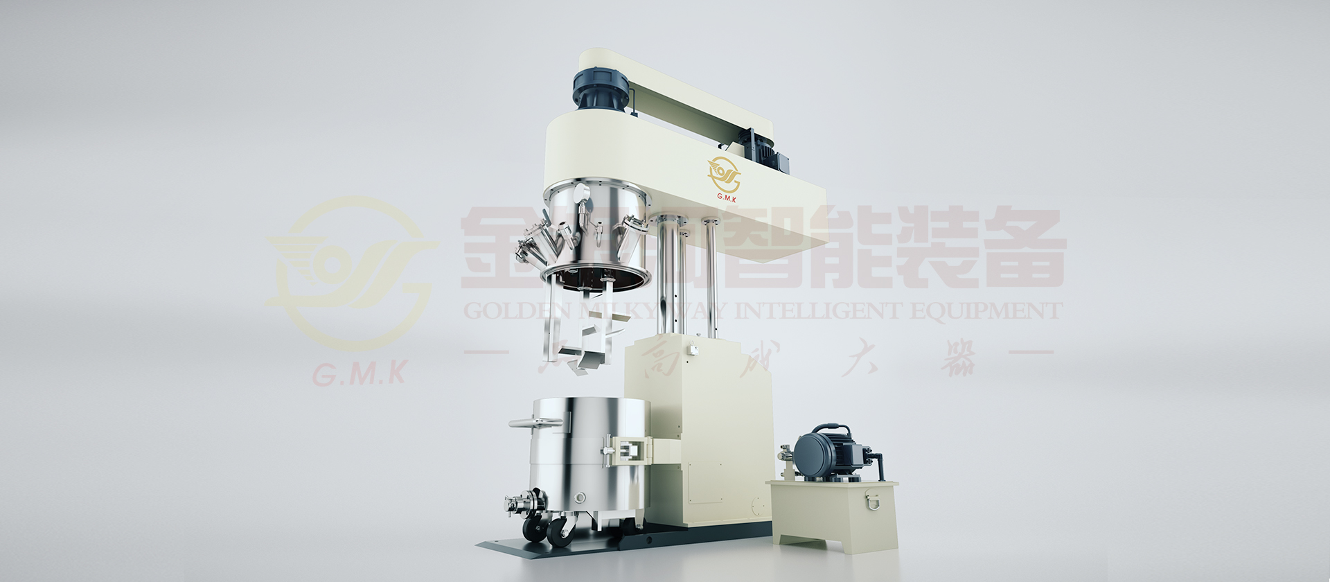 行星搅拌机是一种高效无死点混合搅拌设备,釜内有两根或三根搅拌桨,搅拌桨在绕釜体轴线公转的同时,又绕自身轴线高速自转,其速度可变频调速,使物料作复杂的运动,受到强力的剪切和混合,釜内设自动刮壁和刮底装置,将粘附在釜壁上的物料刮下,实现无死点、高效混合。该设备适用于食品、能源、粘胶、电子电器、氟硅、医药、化妆品、日化等行业生产。