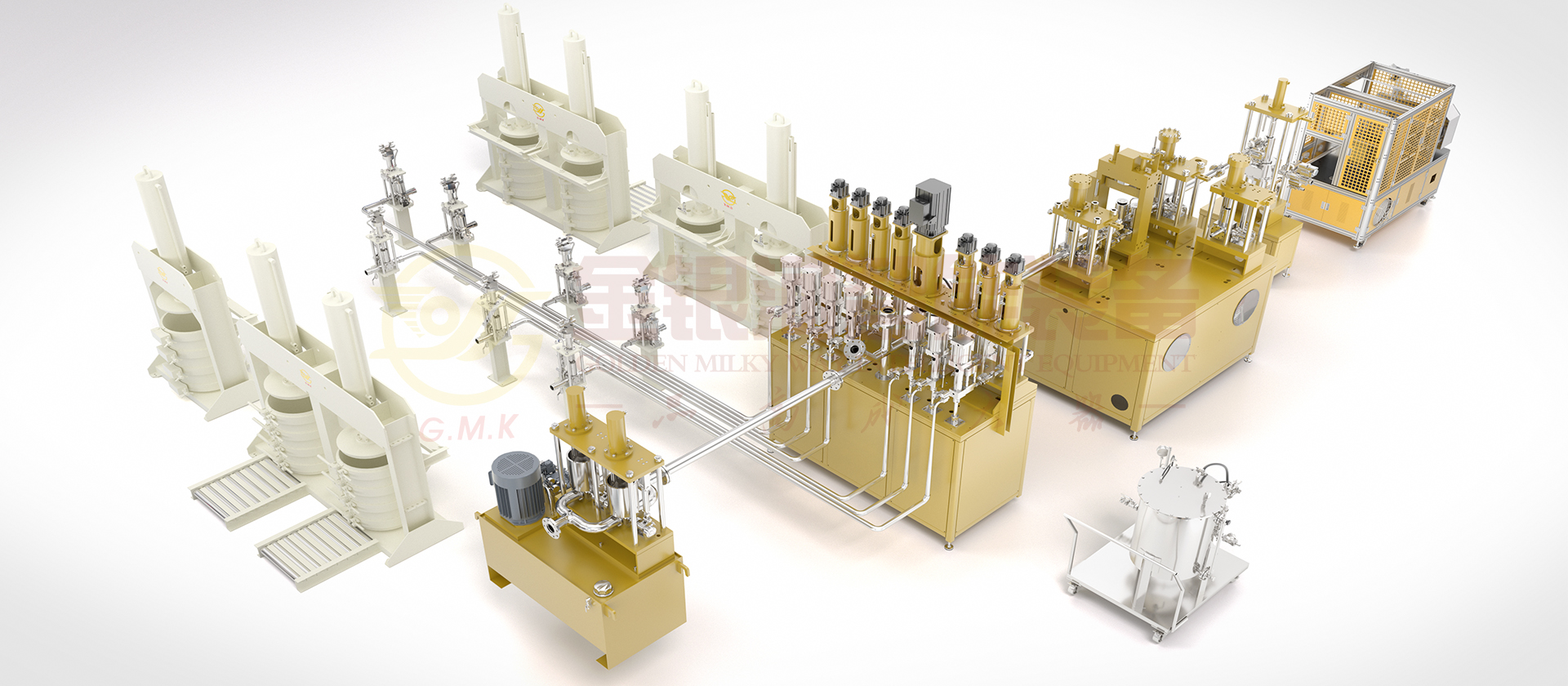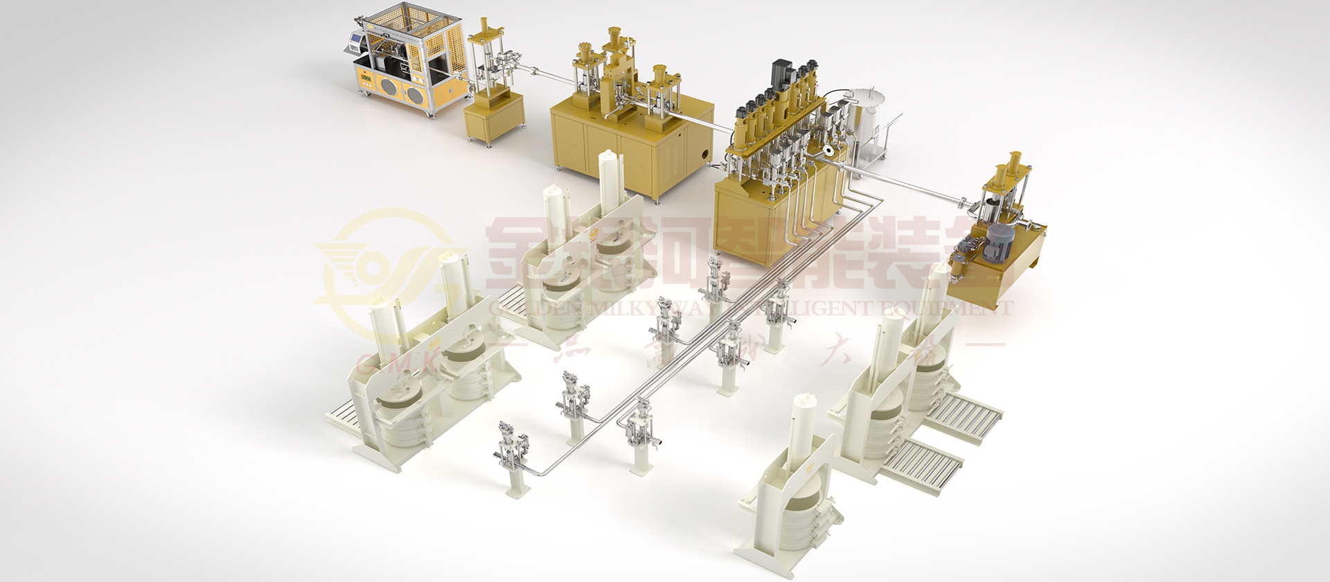 醇型智能调色线是一种新颖的静态混合机,特别适合于批量小、颜色种类多的杂色胶的连续化生产。它由色浆供料系统、色浆伺服定量系统、基胶伺服定量系统、静态混合芯、静态混合增压系统、循环系统、脱泡系统、液压系统、集成电控系统、气控系统、机架等部件组成,其中伺服定量系统、静态增压混合器、脱泡系统是整套设备的关键部件,也是保证产品质量稳定、均匀、可靠的保障。
