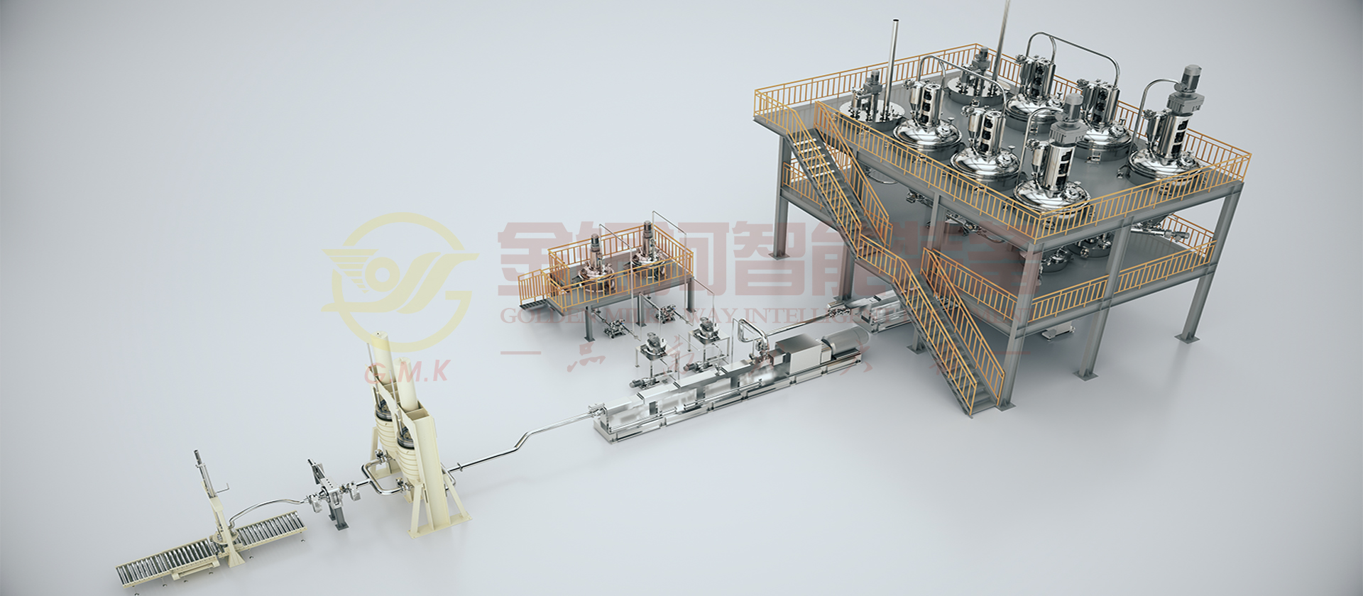 ● 流水线型超高次数双螺杆捏合分散技术,在国际上首次实现了PU胶型大产能连续化制备,产能可达2500L/h(根据机型设定)。