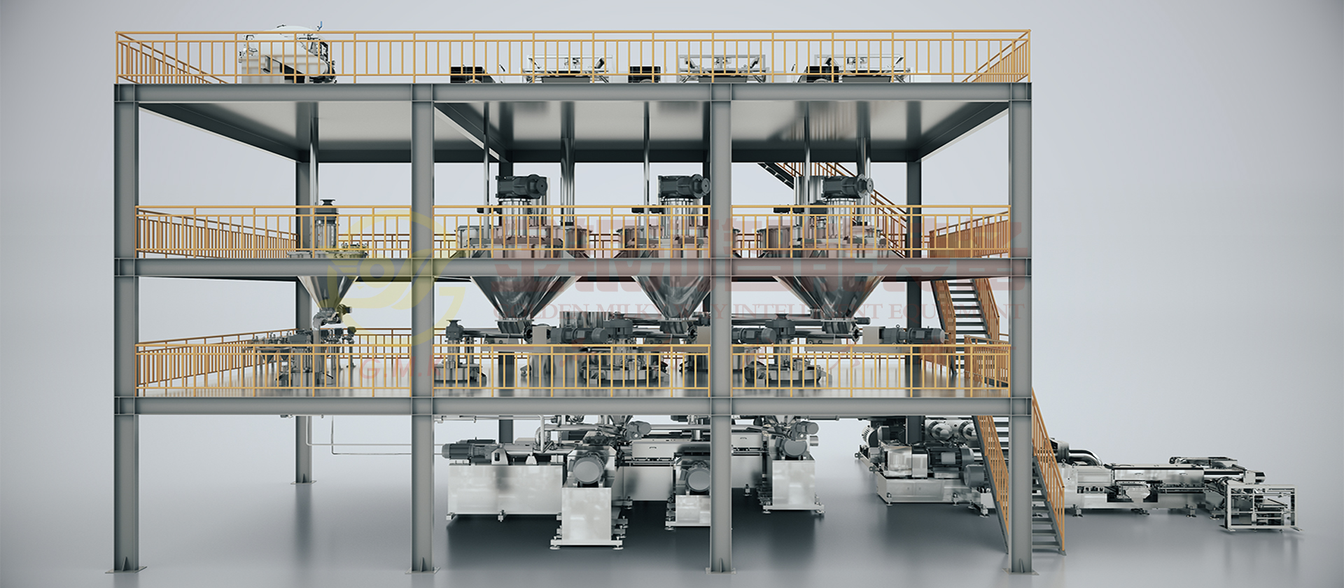 ● 多基料动态计量投料输送技术,实现了多种形态粉、液物料同时在线计量输送至最佳工艺投料点,计量精度可达≤±0.2%(根据机型设定)。