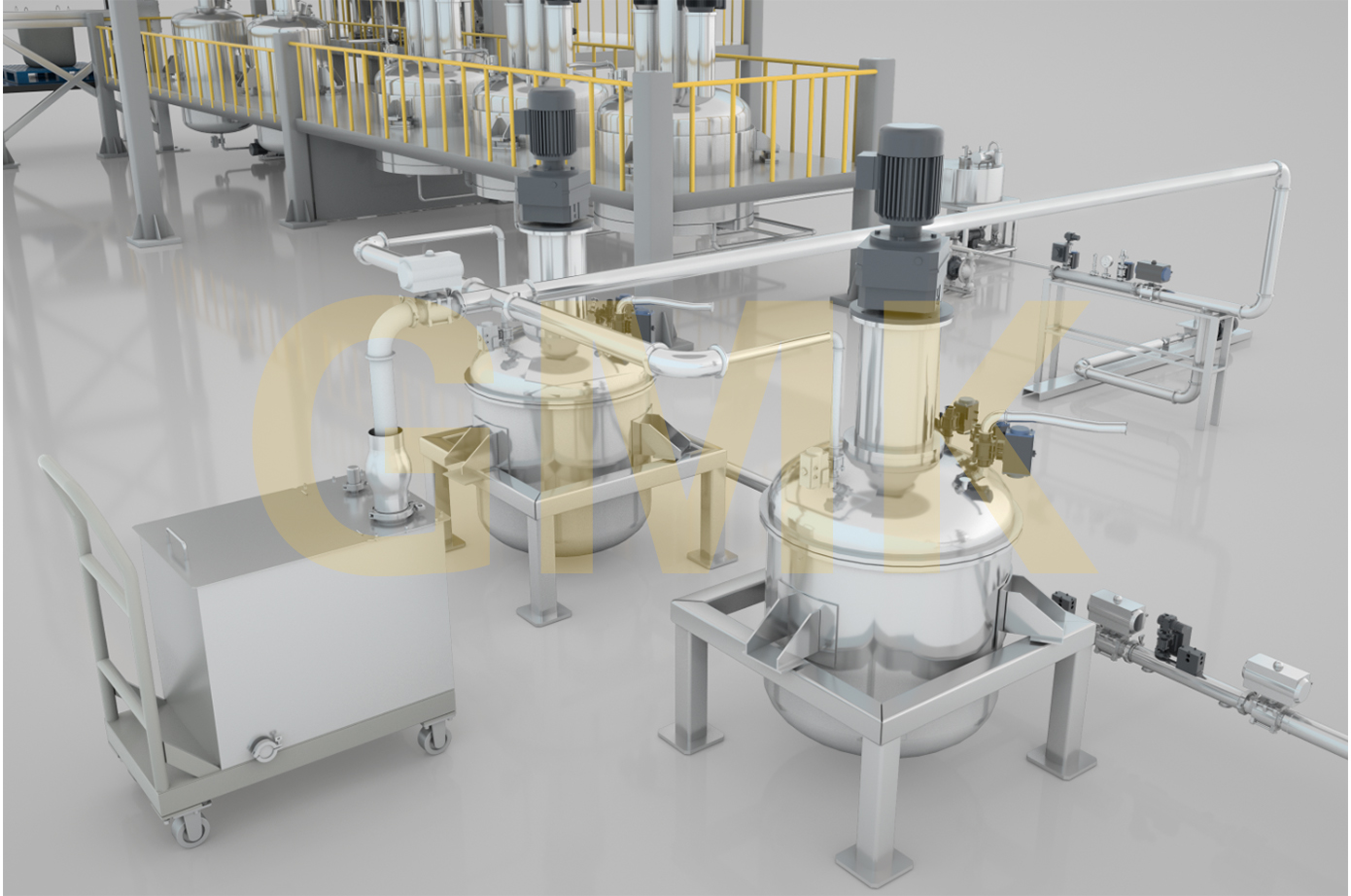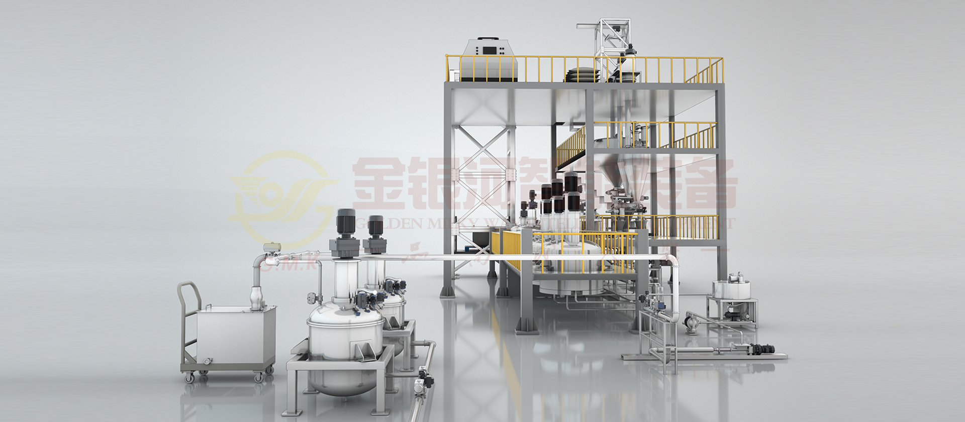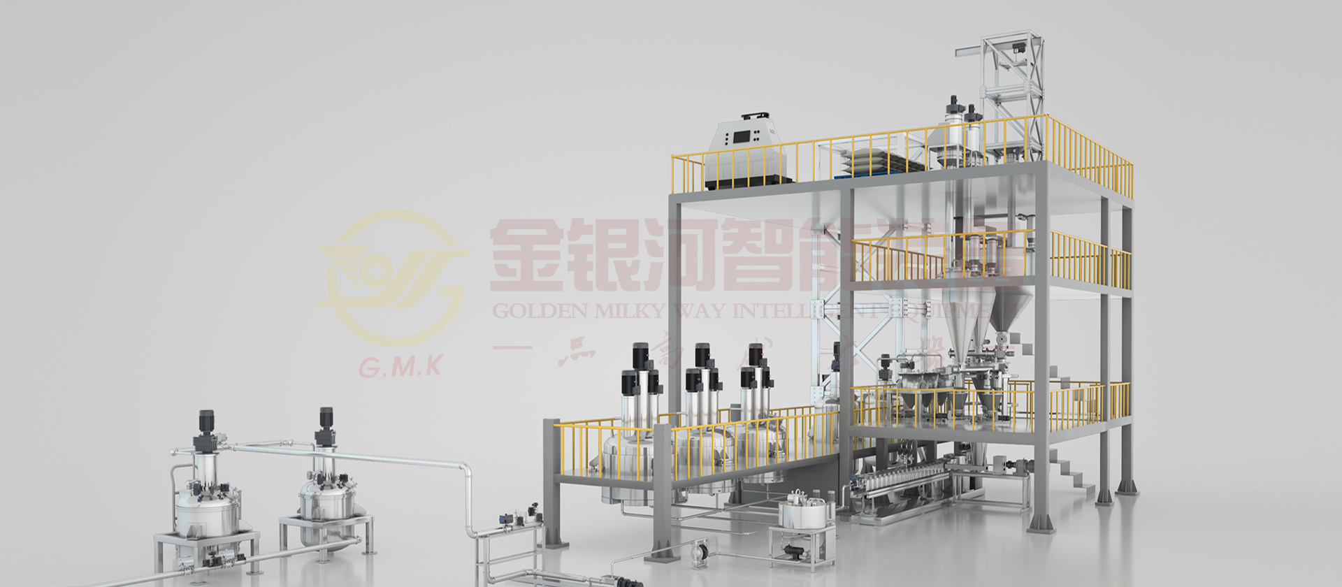 由计量斗、称量及输送系统、贮罐、制胶罐、中转罐、喂料机、高速混料机、增压泵、磁性式过滤器、高速均质机、辅助设备及DCS中央控制系统组成。锂电池的正、负极原材料(粉体与液体)通过精确的计量系统在线自动和连续输送到螺旋混合机中、在螺旋混合机中完成混合、分散、研磨、抽真空等操作形成浆料,然后浆料连续从螺旋混合机中输出进入下道生产工序。它的生产效率高,适合大规模生产;它具有自动化程度高,杜绝物料直接接触空气,产品质量稳定性好,物料及能源损耗少等优点。